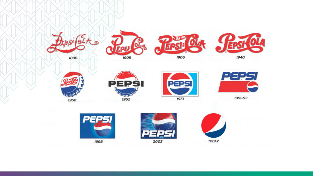 دعنا نذكر (بيبسي) كمثال، فعلى مرِّ الزّمن قامت بتطوير البراند بدافع التّغيير أكثر من عشر مرات منذ1898م.